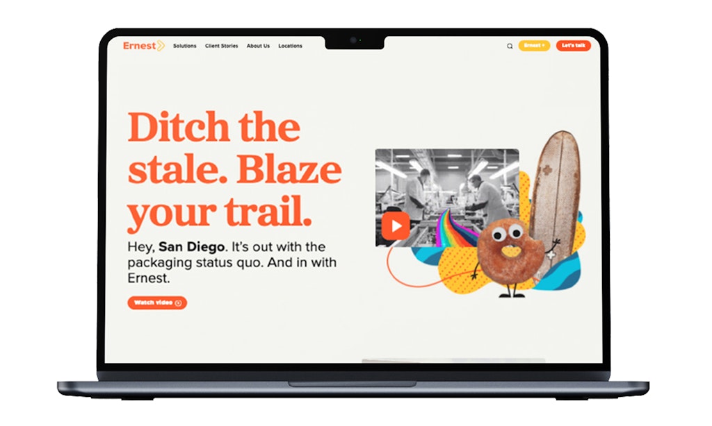 The new Ernest brand came to life externally with a mix of paid marketing, owned media channels, and one-on-one customer interactions in the field. The launch campaign, dubbed “Witness the Freshness,” features Dudley Du-Not, our Cautionary Tale Coordinator—a three-day-old stale donut mascot who joined Ernest after working at some of their subpar competitors. After experiencing a new culture at Ernest, Dudley reminds everyone to always bring fresh ideas that make the company stand apart from stale packaging companies.